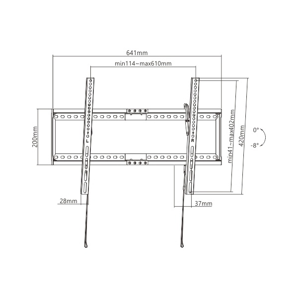 Volně sklopitelná konstrukce pro jednoduchou změnu náklonu TV v úhlu 0°~-8°