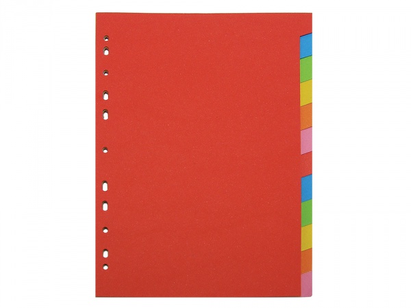 Kartonový rozdružovač 12-ti dílný (2 x 6 barev) s boční europerforací pro použití v pákových, 2 nebo 4 kroužkových pořadačích. Rozměr A4. Nejvyšší kvalita kartonu Brilliant - v novém provedení a zářivých barvách. Ekologický produkt.