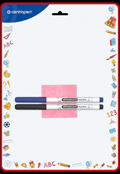 Sada obsahuje oboustranně stíratelnou tabulku formátu A4 s potiskem linek a čtverečků pro nácvik psaní, stírací textilií a dva značkovače se speciálním inkoustem.
